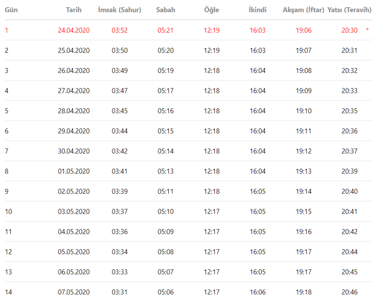 2021 ordu imsakiye tablosu ordu da iftar ezani kacta okunuyor internet haber